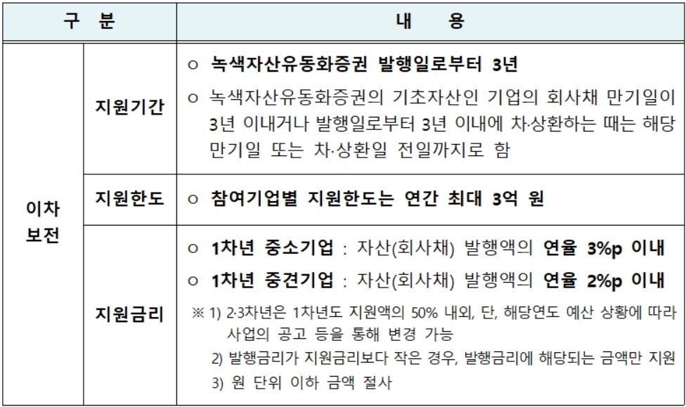 녹색자산유동화증권 발행기업에 최대 3년까지 이자비용 지원