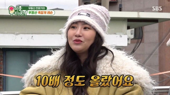 반면 조현아는 “저는 청량리 쪽을 좋게 보고 있다”며 “한 가지 혹할 이야기가 있다. 제가 길을 한번 잘못 들었다. 2016년에. 금호동에 갔다. 길을 잘못 들었는데 위치가 너무 좋아서 그걸 구매했다. 택시가 잘못 들어간 길에서 인프라만 보고 구매했다. 초기투자비용 대비 10배 정도 올랐다”고 했다.