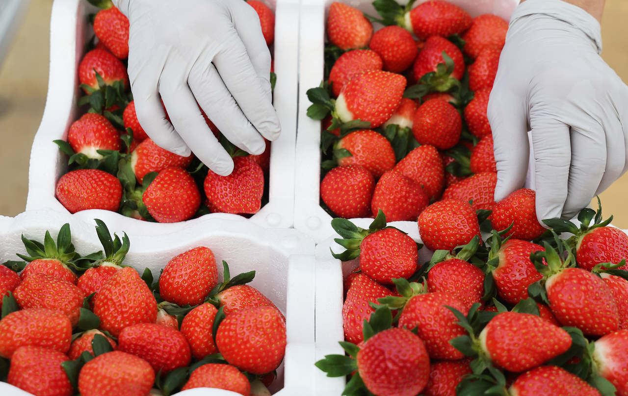 | 경기도 화성시 장안면 한 농원에서 관계자가 딸기를 수확하고 있다. [연합] |