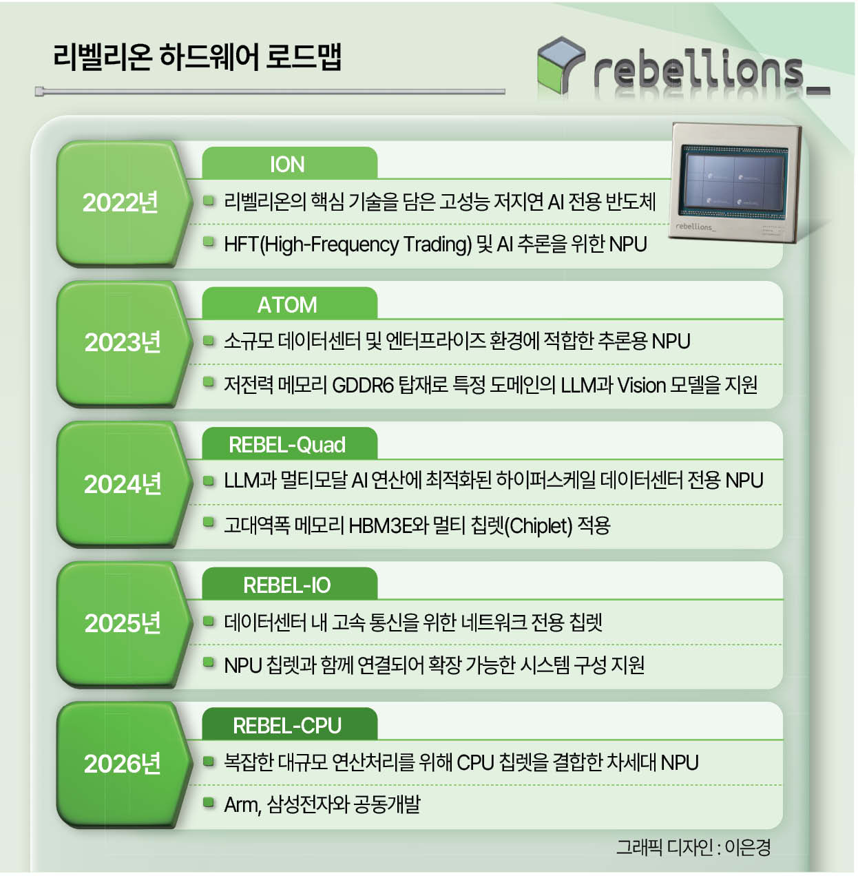 향후 리벨리온은 리벨쿼드를 중심으로 고속 통신 전용 칩렛을 결합한 ‘REBEL IO(리벨-아이오)’ 등 확장 라인업을 선보일 예정이며, 고객의 다양한 환경과 시장 변화에 대응할 수 있는 모듈형 칩렛 생태계를 구축할 예정이다. 특히 설립 5년 만에 양산과 상용화 전 과정을 완주하며, 한국 스타트업 가운데 드물게 칩 설계에 그치지 않고, 카드·서버·랙까지 확장된 제품군을 구현했다.
