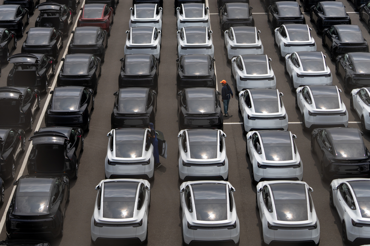 | 지난해 7월 일본 요코하마의 한 항구에 정차된 테슬라 전기차들. [게티이미지] |