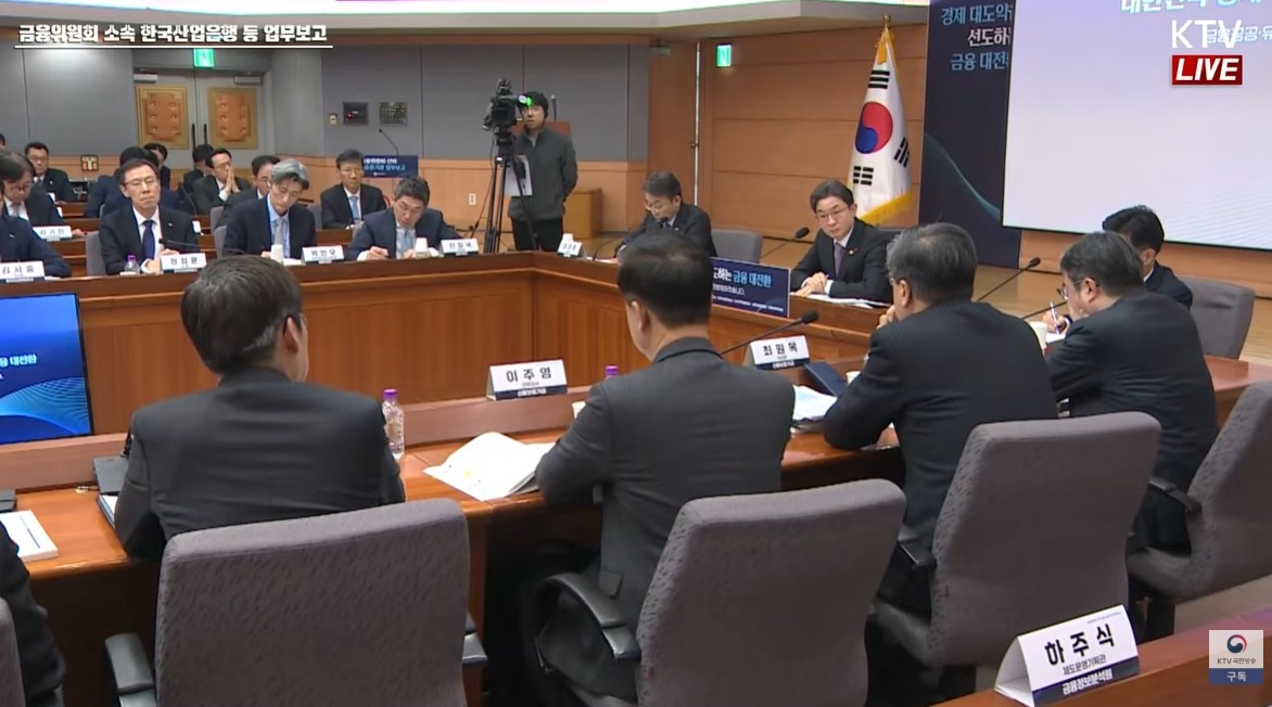 | 이억원 금융위원장이 13일 정부서울청사에서 금융위 산하 금융공공기관 업무보고를 받고 있다. [KTV 유튜브 캡처] |