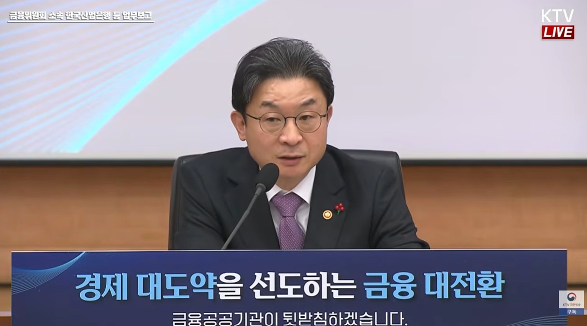 | 이억원 금융위원장이 13일 정부서울청사에서 열린 금융위 산하 금융공공기관 업무보고에서 발언하고 있다. [KTV 유튜브 캡처] |