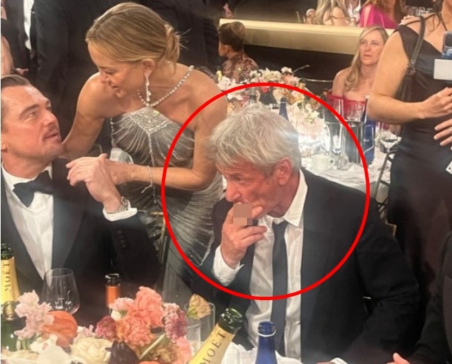 이 사진은 X, 인스타그램 등 소셜미디어를 통해 빠르게 퍼져 나갔다. 사진을 살펴보면 펜은 시상식이 진행되는 자리에서 입에 담배를 물고 연기를 흡입하고 있다. 펜의 옆자리에는 영화 ‘원 배틀 애프터 어나더’에 함께 출연한 배우 레오나르도 디카프리오가 앉아 있다.