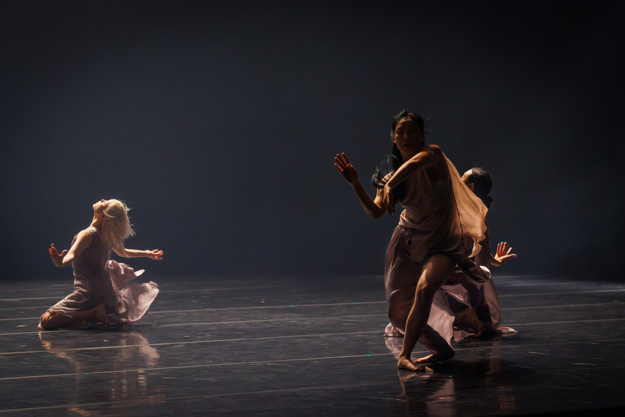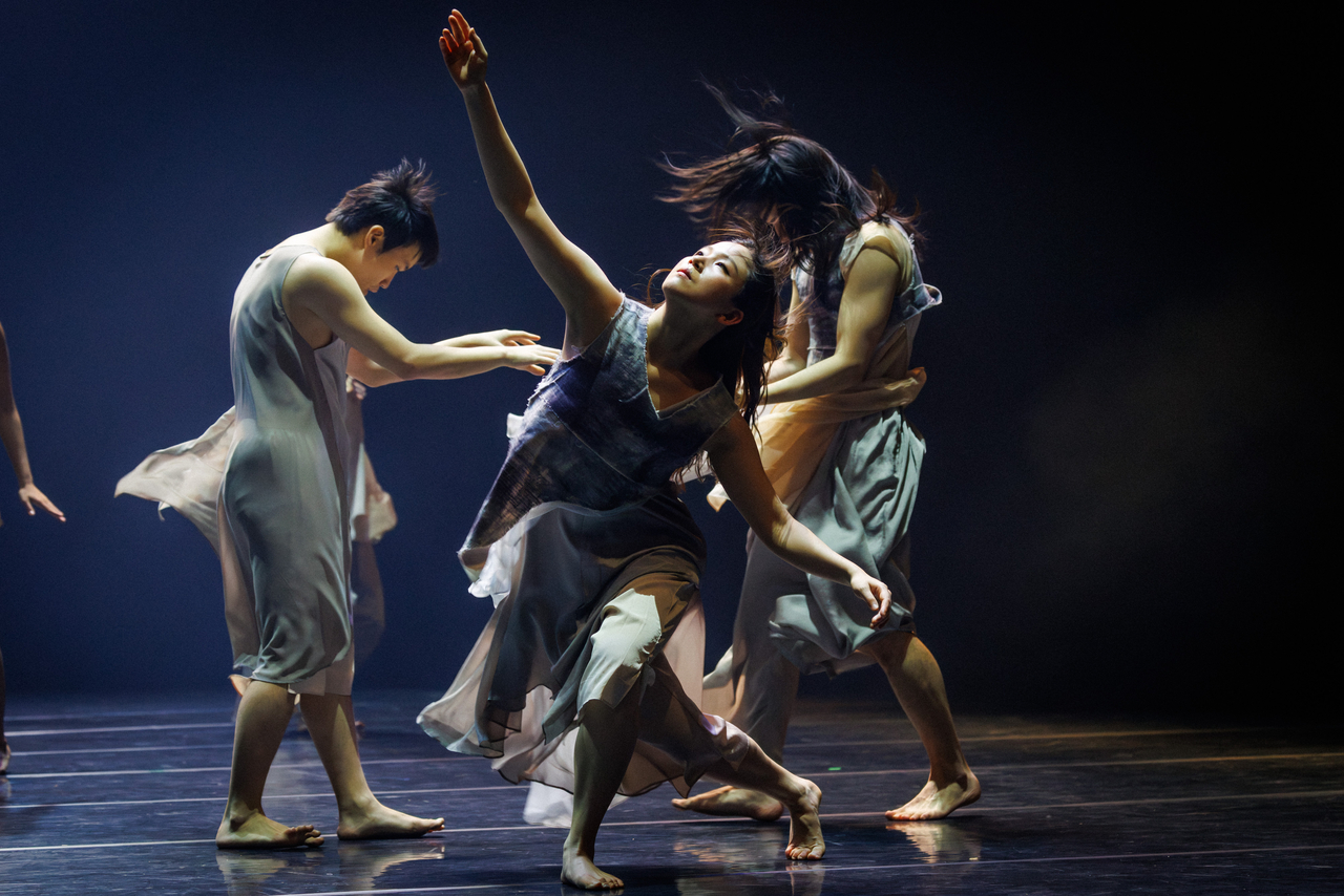 [헤럴드경제=고승희 기자] 푸른 파도 같은 바람이 밀려온다. 그 바람에 흔들리는 것이 나인지 타인인지, 사람인지 아니면 또 다른 생명체인지 착시가 드는 무대. 옷자락은 풀잎처럼 일렁이고, 민들레 홀씨가 돼 연기처럼 흩어진다. 시간을 건너온 어느 시대, 어떤 계절의 산물이 기어이 살아남아, ‘이윽고’ 오늘에 다다른다.