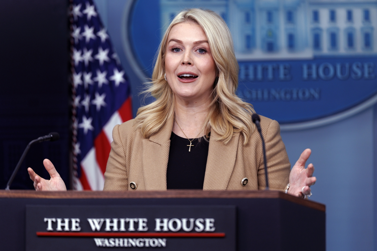 | 캐롤라인 레빗 백악관 대변인이 15일(현지시간) 워싱턴DC 백악관에서 기자회견을 하고 있다. [EPA] |