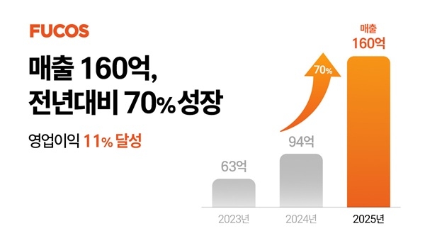 식품 제조기업 푸코스(대표 정재훈)가 2025년 연매출 160억 원을 기록하며 전년 대비 70%의 높은 성장률을 달성했다고 밝혔다.