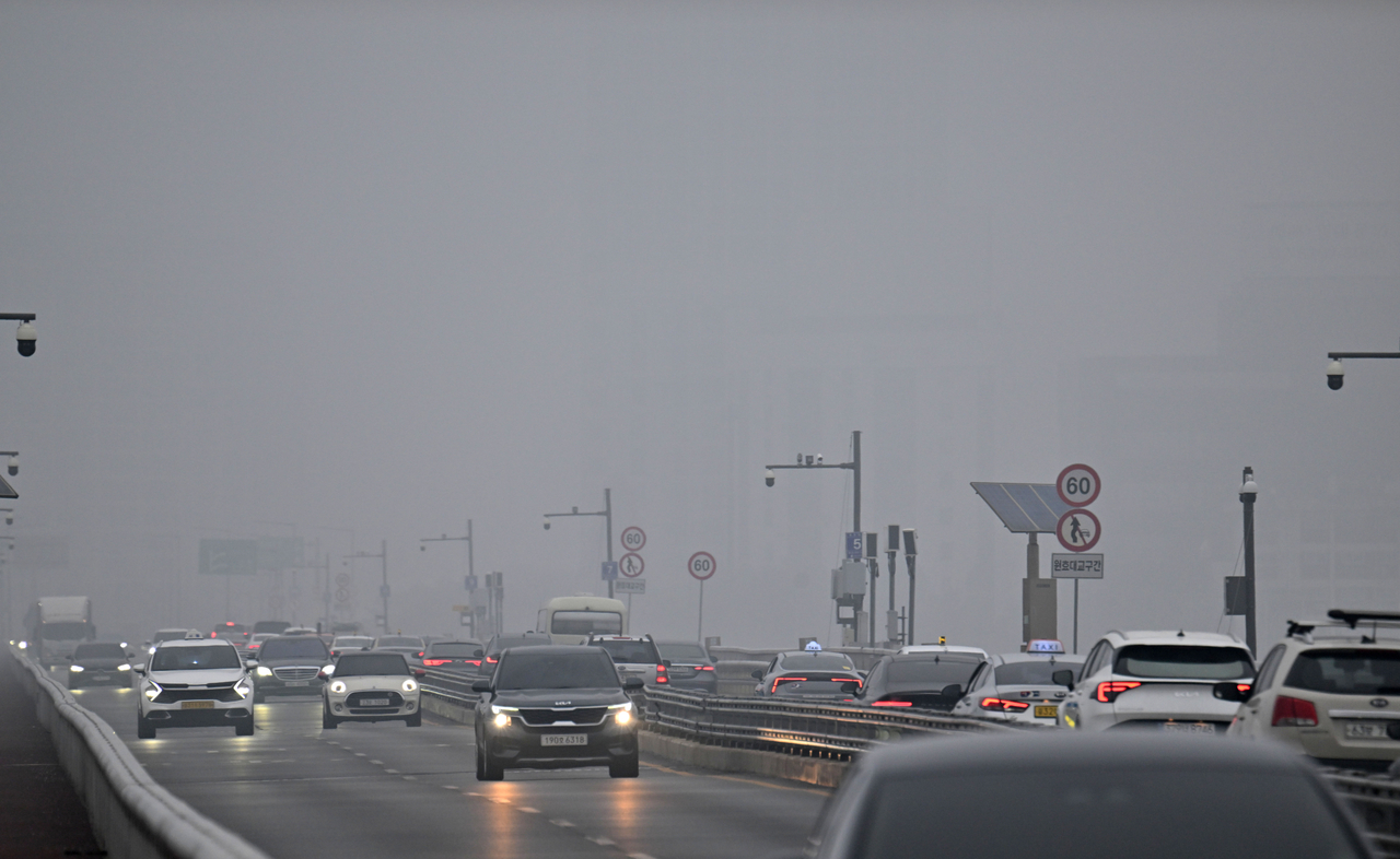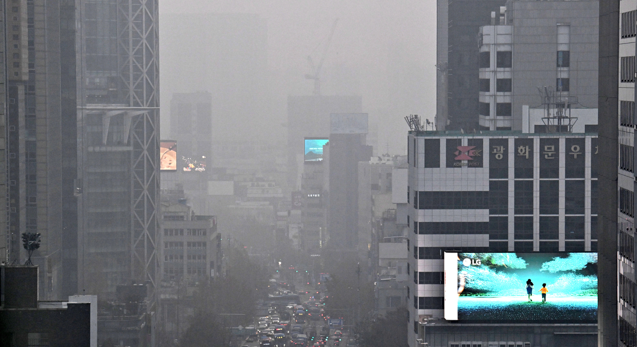 | 수도권에 미세먼지 수치가 ‘나쁨’ 상태를 보이고 있는 16일 오전 서울 도심 일대가 미세먼지와 안개로 인해 뿌연 모습을 나타내고 있다. 임세준 기자 |