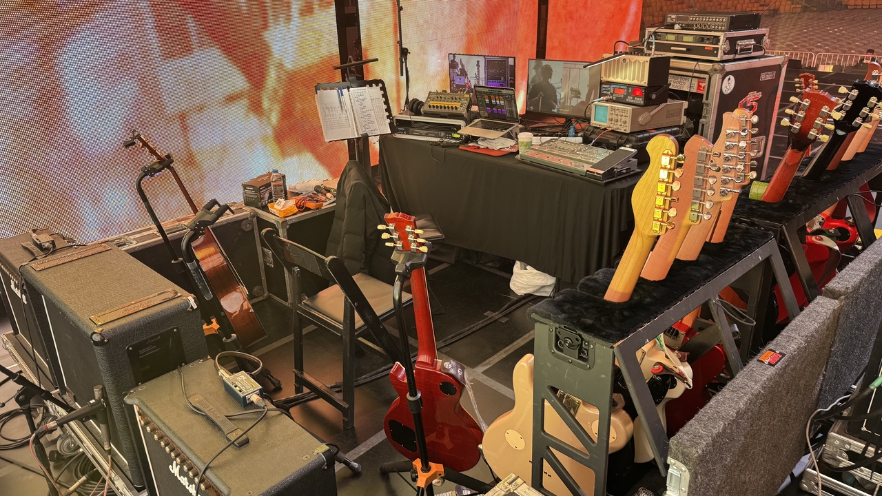 | 조용필과 위대한 탄생 공연에서 쓰는 최희선의 기타들 [본인 제공] |