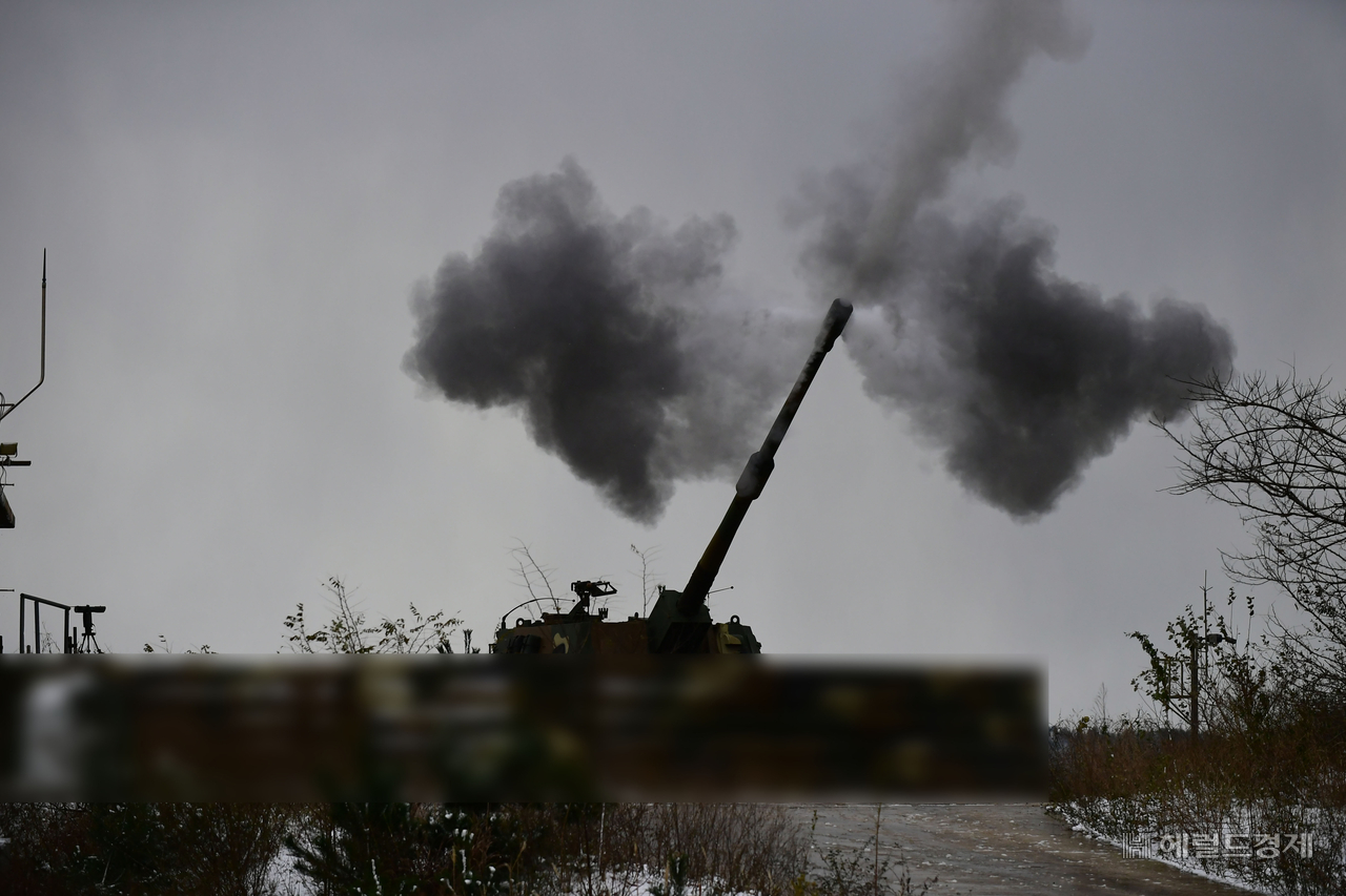 | K9 자주포 실사격 모습. [헤럴드DB] |