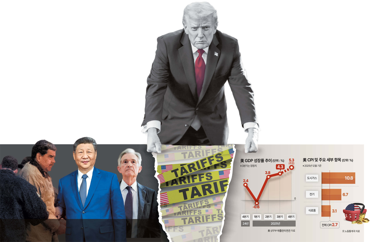 영국 매체 가디언은 지난 18일 보도에서 “아이러니하게도 트럼프의 최근 심술(tantrum)이 초래할 가장 중대한 위험 중 하나는 미국 내 물가 재반등 가능성”이라며 주목했다. 지난해 이미 부과된 관세는 물자 비축분이 있어 인플레이션에 큰 영향을 미치지 못했지만, 올해는 미국 기업들이 추가 비용을 흡수할 여력이 줄어들면서 물가가 한 단계 더 상승할 수 있다는 경고가 나온다. 인플레이션 위험이 고조되면 트럼프 대통령이 사상 초유의 미국 중앙은행 수장(제롬 파월 연방준비제도 의장)을 수사하면서까지 압박하려 했던 금리인하는 가능성이 더욱 낮아진다. 도현정 기자
