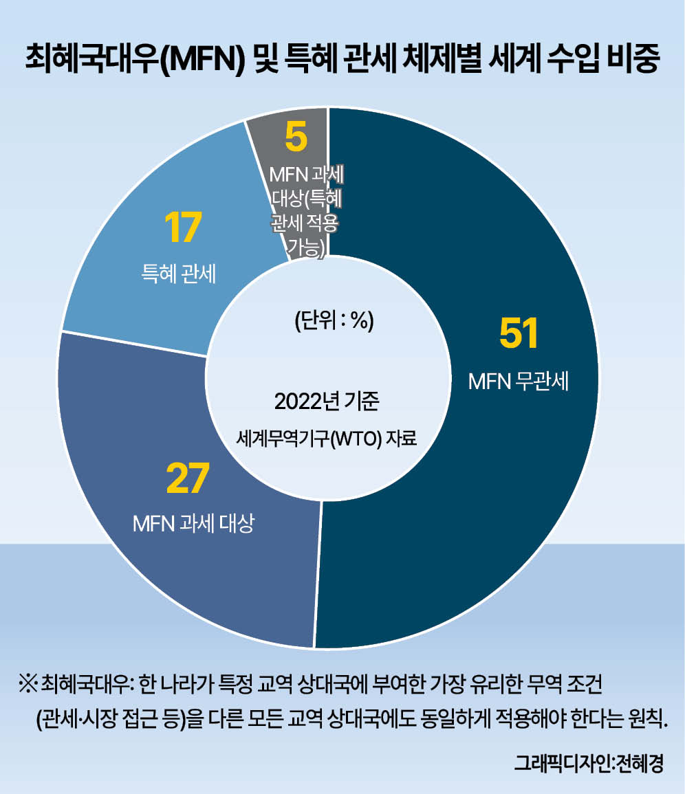 그러나 미국이 국제비상경제권한법(IEEPA)을 근거로 WTO에서 약속한 MFN 관세율 위에 추가 관세를 부과할 수 있게 되면서, 세계 최대 경제국의 MFN 원칙 준수는 사실상 붕괴됐다. 더욱이 IEEPA에 따른 관세는 일률적이지도, 안정적이지도 않다. 지정학적 상황, 급변하는 양자 협상, 현지 여건에 따라 수시로 변동되면서 무역 환경은 점점 더 예측 불가능하고 불확실해지고 있다. 이는 ‘규칙에 기반한 질서’에서 ‘힘에 기반한 질서’로의 이동을 의미한다. 다만 MFN 원칙이 완전히 사망했다는 주장은 다소 과장일 수 있다. 여전히 전 세계 상품 교역의 80% 이상이 MFN 조건하에서 이뤄지고 있기 때문이다. WTO 역시 여전히 일정한 역할을 수행하고 있지만, 규칙 제정 기능에 있어서는 더 이상 신뢰하기 어려운 상황이 됐다.