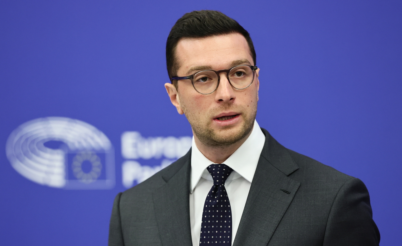 | 프랑스 극우 정당 국민연합(RN)의 조르당 바르델라 대표가 20일(현지시간) 스트라스부르 유럽 의회에서 열린 기자 회견에서 발언하고 있다. [로이터] |