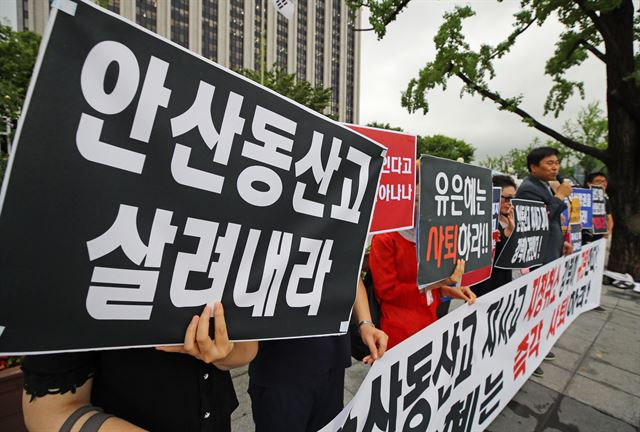 | 자율형사립고(자사고)의 사회통합전형에서 6년 연속 미달 했다는 분석 결과가 나왔다. 사진은 과거 안산동산고 자율형사립고 지위 관련 시위자들의 모습.[연합] |