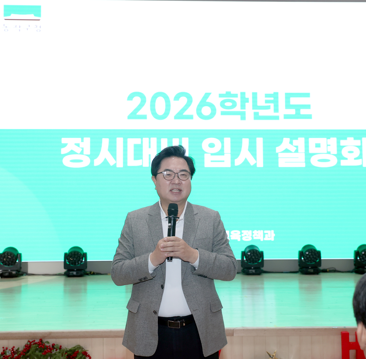 자세한 사항은 교육정책과로 문의하면 된다. 박일하 동작구청장은 “수험생들의 입시 준비에 실질적인 도움을 주기 위해 이번 공유회를 마련했다”며 “앞으로도 맞춤형 교육 지원을 통해 수험생들의 진로·진학 고민을 해결해 나가겠다”고 말했다.
