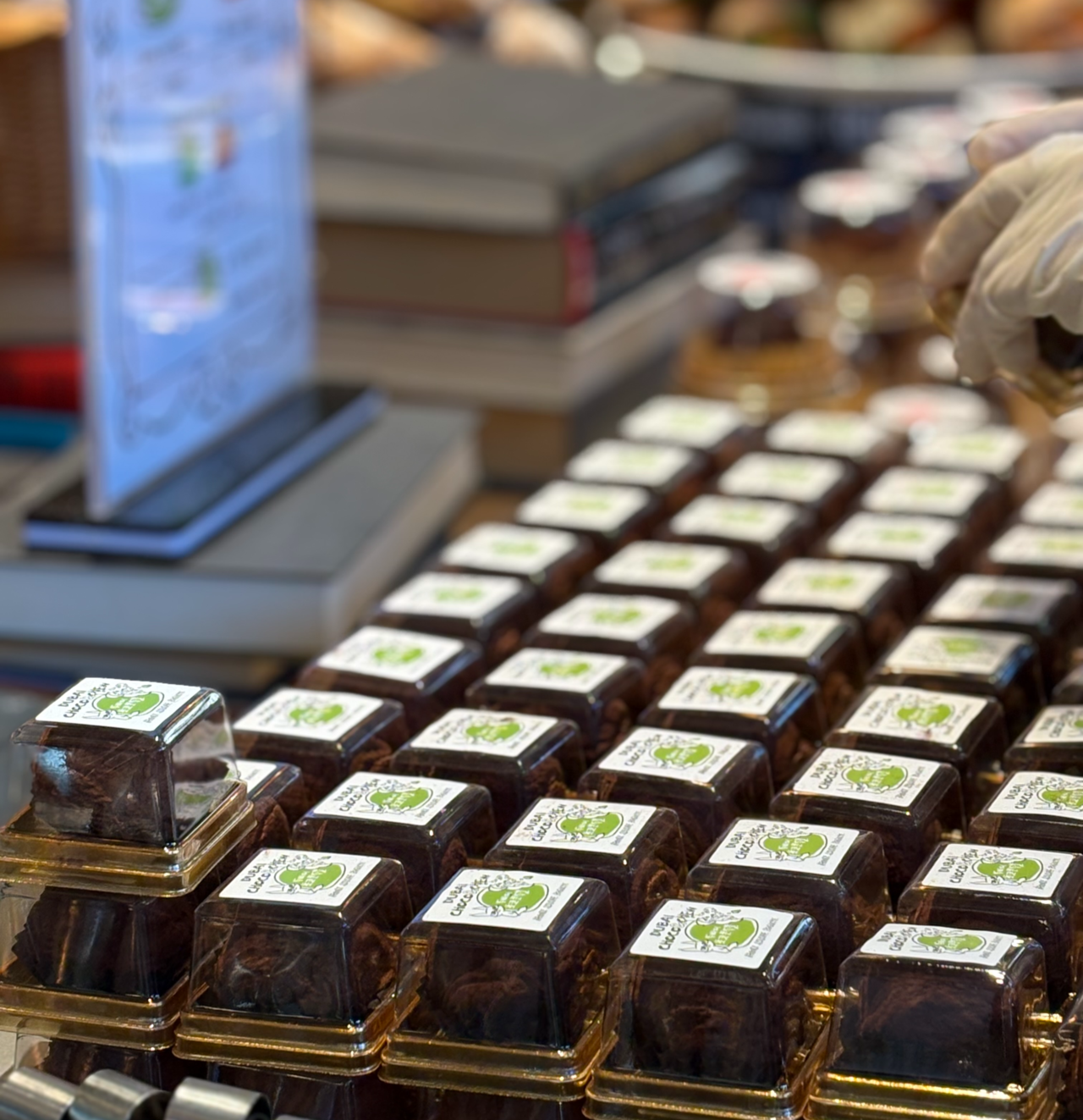 | 서울 종로구 한 카페에서 직원이 두바이 쫀득 쿠키를 진열대에 담고 있다. 강승연 기자 |