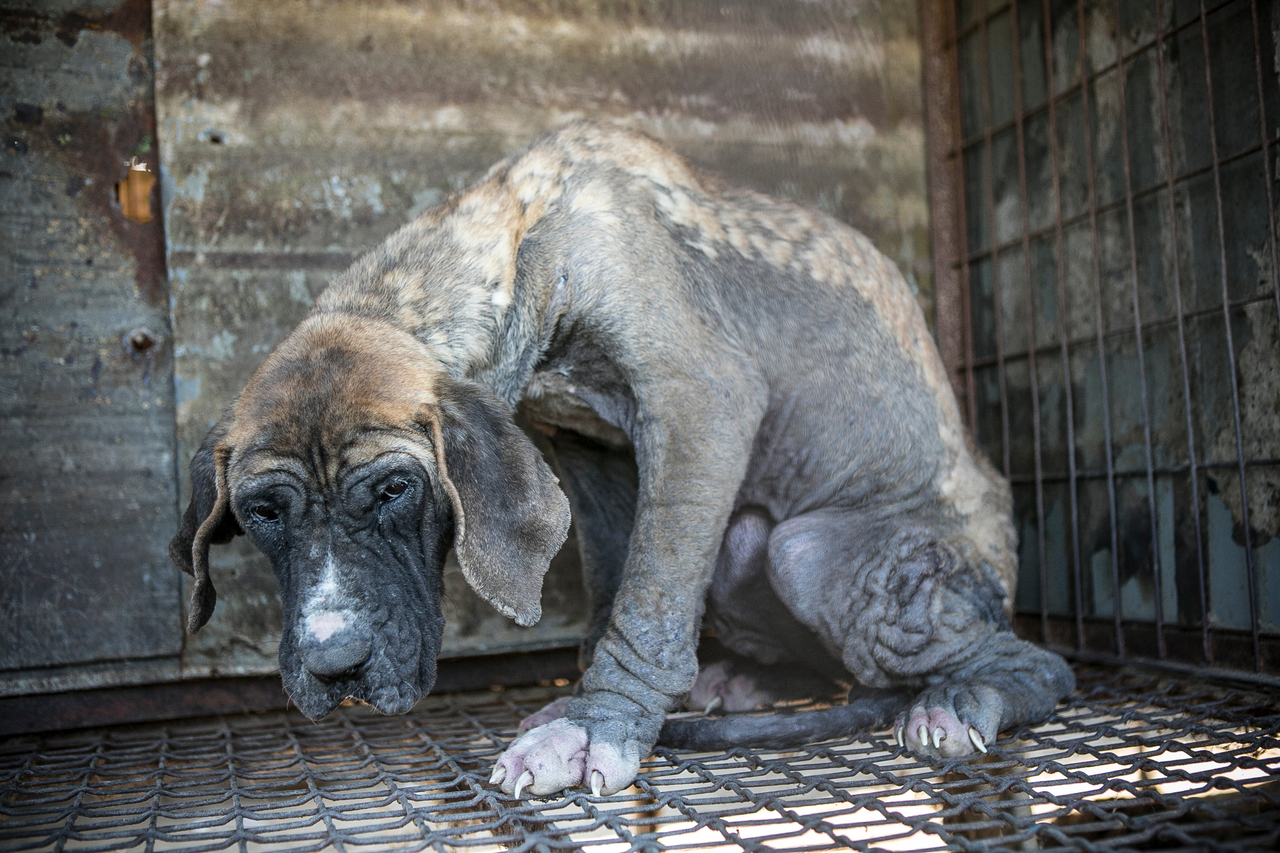 | 지난해 5월 한국 휴메인 월드 포 애니멀즈가 충북 청주 개농장에서 구조한 구조견.[한국 휴메인 월드 포 애니멀즈 제공] |