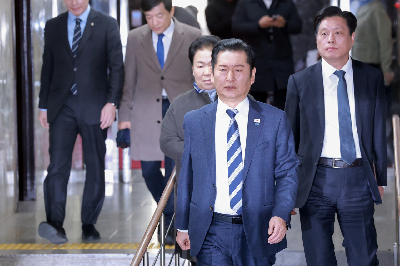 | 정청래 더불어민주당 대표가 22일 국회에서 열린 정책 의원총회에 참석하고 있다. [연합] |