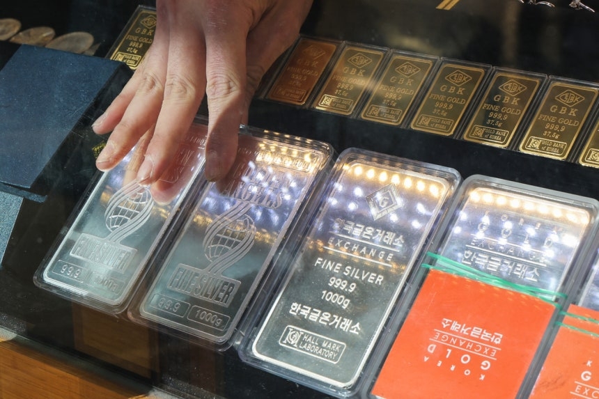 | 서울 종로구 한 보석 상점에 놓여진 실버바 [연합] |