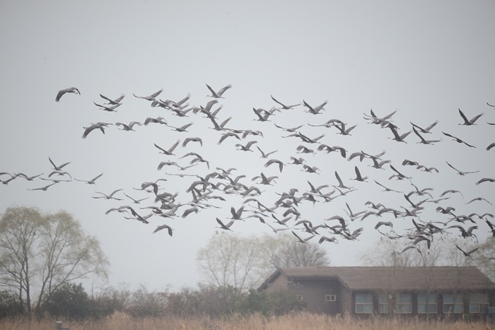 | 순천만에서 월동하는 흑두루미 떼. |