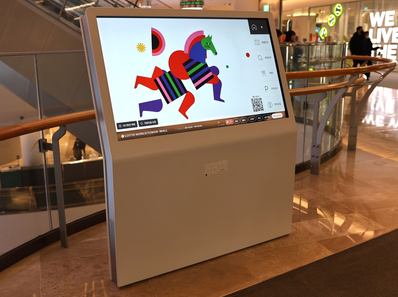 롯데월드몰 배리어프리 키오스크는 휠체어 사용자의 눈높이에 맞춰 낮은 화면 기능을 도입했다. 시각장애인과 저시력자를 위한 음성 안내 기능과 고대비, 확대 기능도 갖추고 있다.