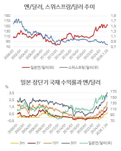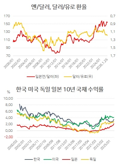 2025년 10월 4일, 아베노믹스의 열렬한 지지자인 사나에 다카이치가 자민당 총재에 선출됐다. 달러당 140엔이던 환율은 단숨에 150엔대로 올라섰고, 조기 총선 가능성이 거론된 1월 중순에는 159엔까지 치솟았다.