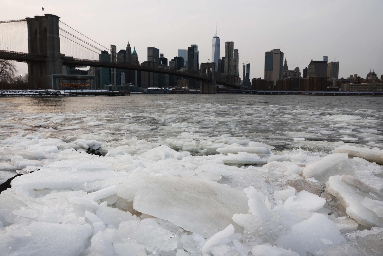 | 주말 동안 발생한 겨울 폭풍 이후 뉴욕시가 혹한을 겪으면서, 27일(현지시간) 브루클린 해안 인근 이스트강에 얼음이 쌓여 있다. [AFP] |