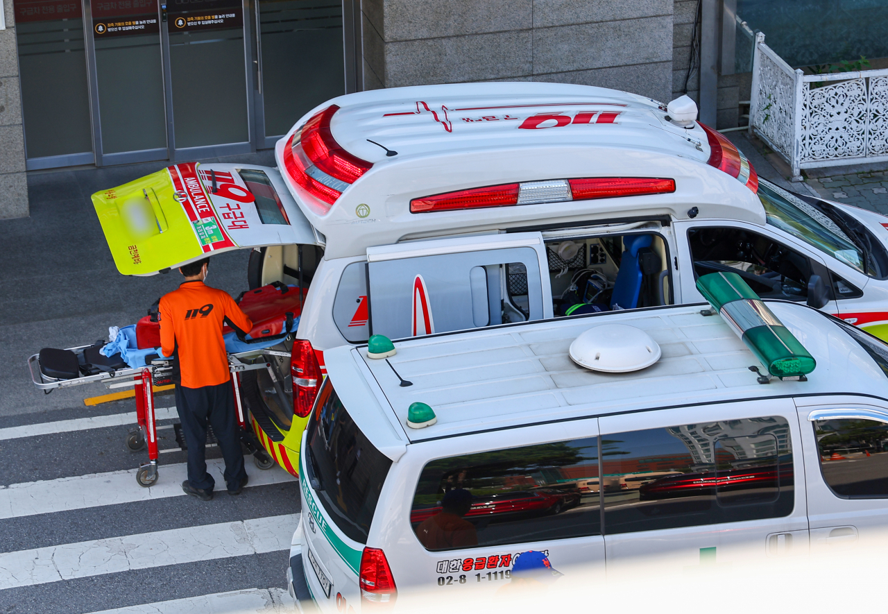 | 서울 시내 한 대학병원 권역응급의료센터 앞에 구급차들이 대기하고 있다. 기사 내용과 관련 없는 사진 [연합] |