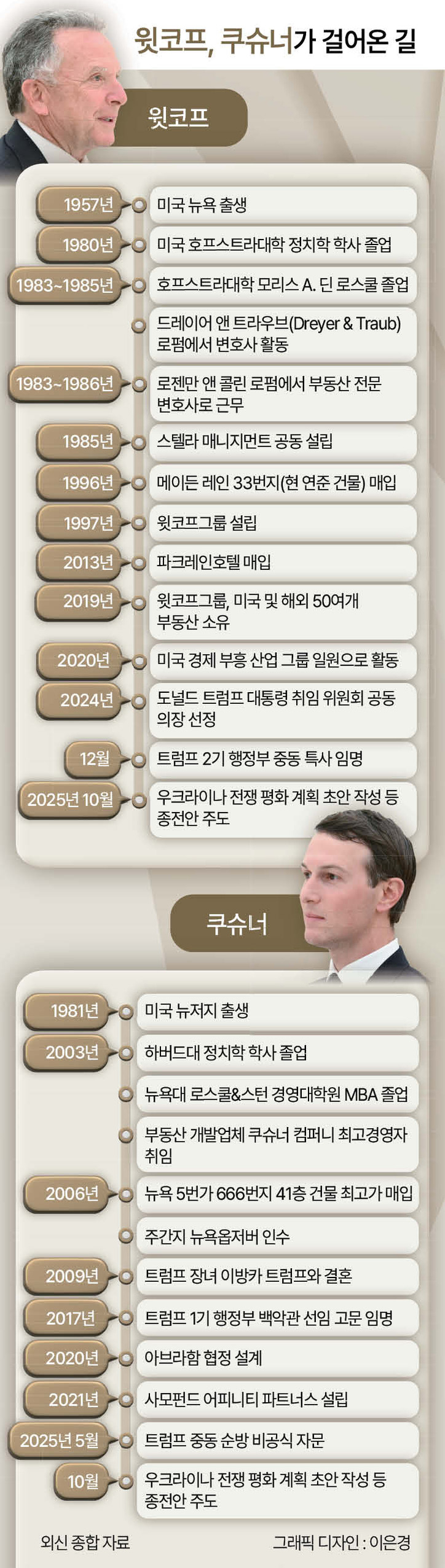4년째 이어진 우크라이나 전쟁이 마침표를 찍을지, 아니면 기약 없는 소모전으로 장기화할지는 트럼프의 심복이자 부동산 사업가 윗코프와 맏사위 쿠슈너의 협상력에 달렸다. 김영철 기자