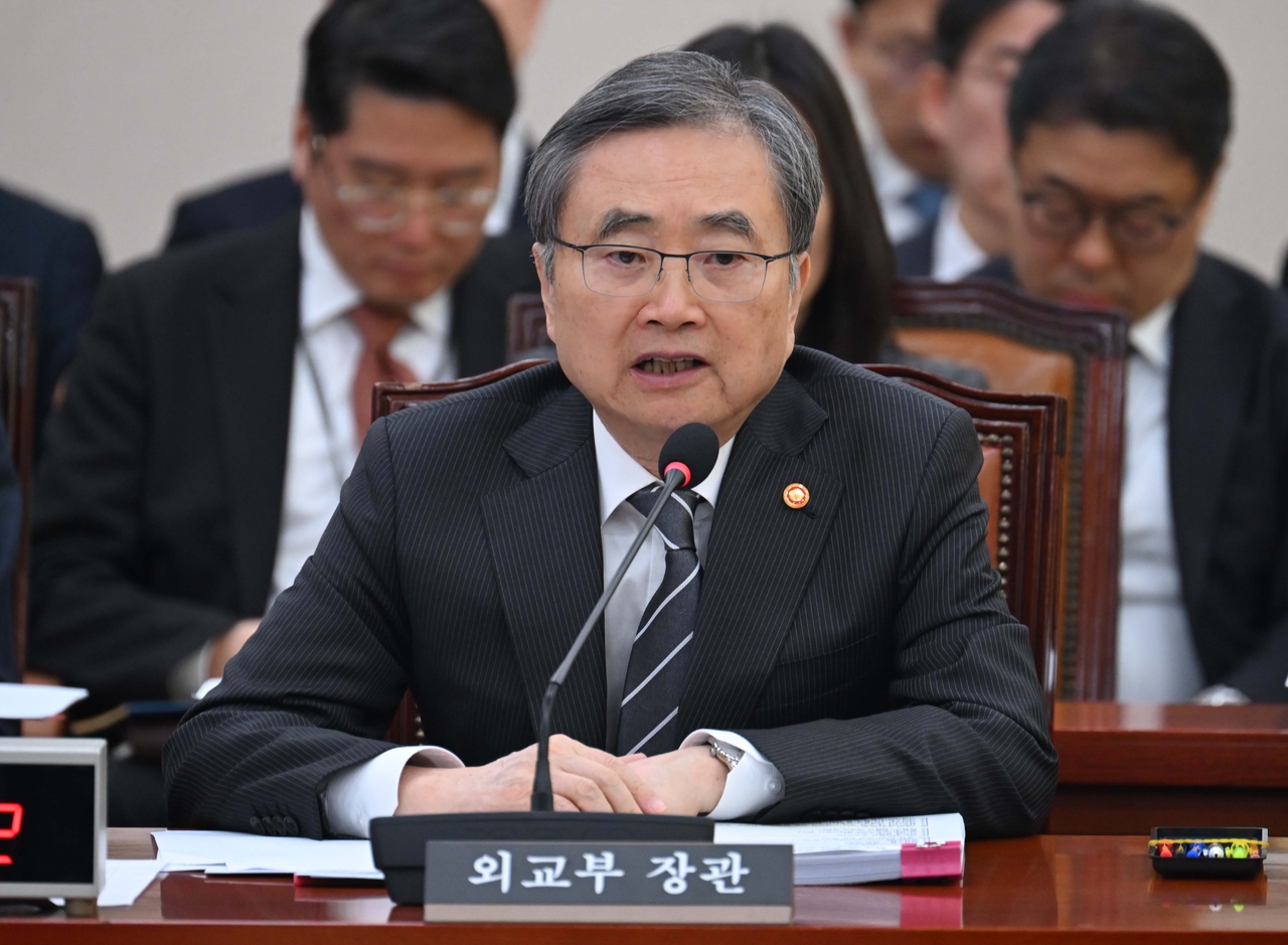 | 조현 외교부 장관이 28일 오전 서울 여의도 국회에서 열린 외교통일위원회 전체회의에서 의원들의 질의에 답변하고 있다. 이상섭 기자 |