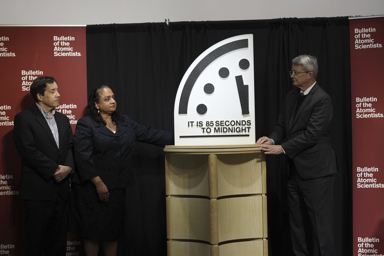 ‘지구 종말 시계’는 2020년 이후에는 100초 전으로 유지됐다가 2023년 러시아의 우크라이나 침공 이후 핵무기 사용 우려가 커진 점을 반영해 90초로 조정됐다.