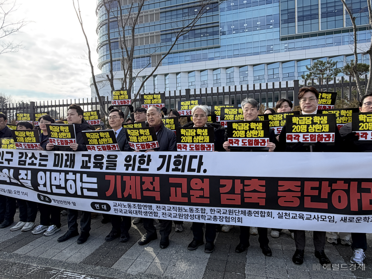 [헤럴드경제=김용재 기자] 정부가 초중등 교사 위주로 3000명 이상 교원을 줄이기로 하자 교원단체는 “공교육을 포기하는 선언과 마찬가지”라며 반발하고 있다. 정부는 학령인구 감소에 따라 교원을 줄이겠다는 계획을 세웠지만 교육계와 교원단체에서는 ‘맞춤형 교육 수요가 늘어난다’면서 교원을 더 늘려야 한다고 주장한다.