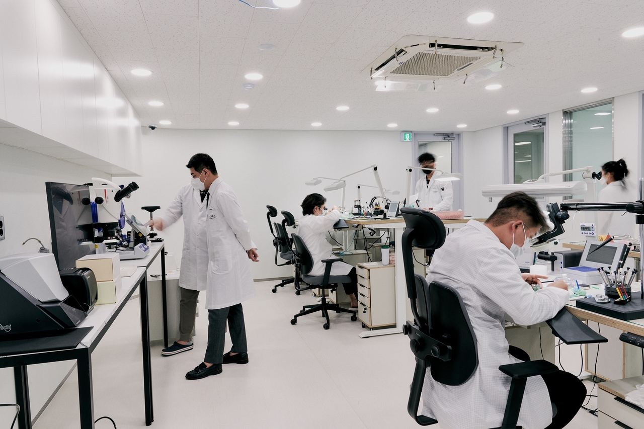 이어 롤렉스, 오데마 피게 등 하이엔드 시계 브랜드에서 최소 5년 이상, 길게는 수십년간 커리어를 쌓은 베테랑들을 모았다. 검수·수리한 시계를 처음 나온 상태처럼, 또 ‘스위스 스탠더드’에 맞추기 위해 롤렉스·리치몬트 등 세계적 제조사와 동일한 등급의 고가의 장비를 스위스, 독일에서 공수했다. 무브먼트 세척기, 팔렛포크 조정 현미경, 오토매틱 테스트기, 방수 테스트기, 폴리싱 기기 등 종류도 다양하다.