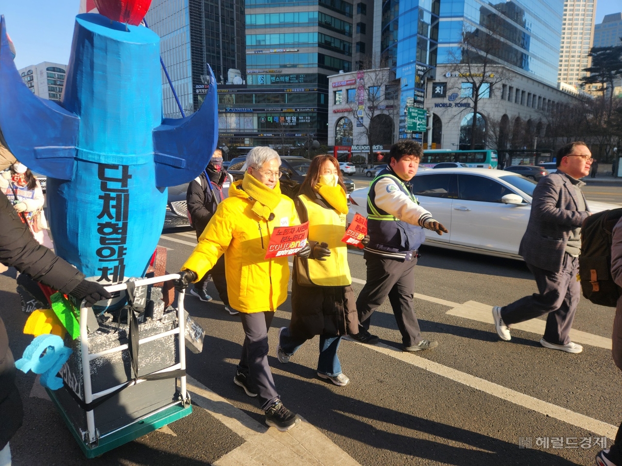 출근하던 쿠팡 직원들은 고개를 숙이고 빠른 걸음으로 들어가거나 집회 현장 모습을 사진 찍기도 했다.