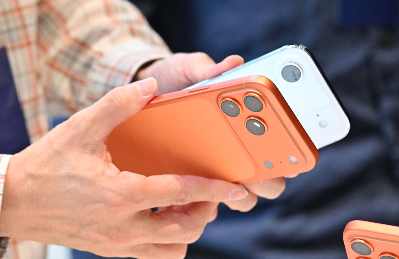 | 서울 중구 명동 애플스토어를 찾은 한 고객이 아이폰17 프로와 에어 제품을 비교하고 있다. [헤럴드DB] |