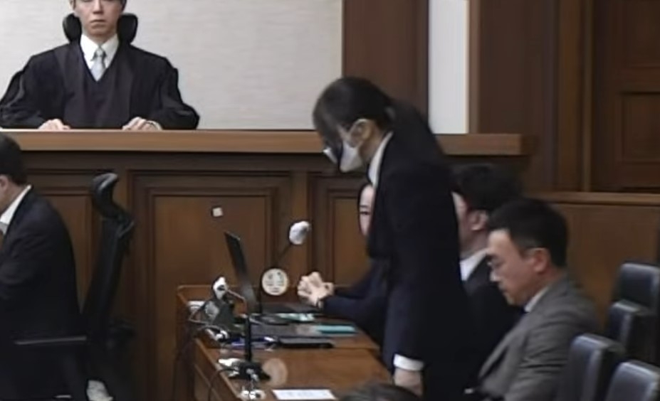 | 서울중앙지법 형사27부(부장 우인성)가 28일 오후에 열린 윤석열 전 대통령 부인 김건희 여사의 자본시장법 위반, 정치자금법 위반, 특정범죄가중처벌법상 알선수재 혐의 선고 공판에서 징역 1년 8개월을 선고했다. 재판을 마친 김 여사가 고개를 숙이고 있다. [서울중앙지법 제공 영상] |