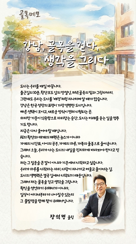 | 강남구청장 출마를 선언한 장석명 전 교수 골목메모 |