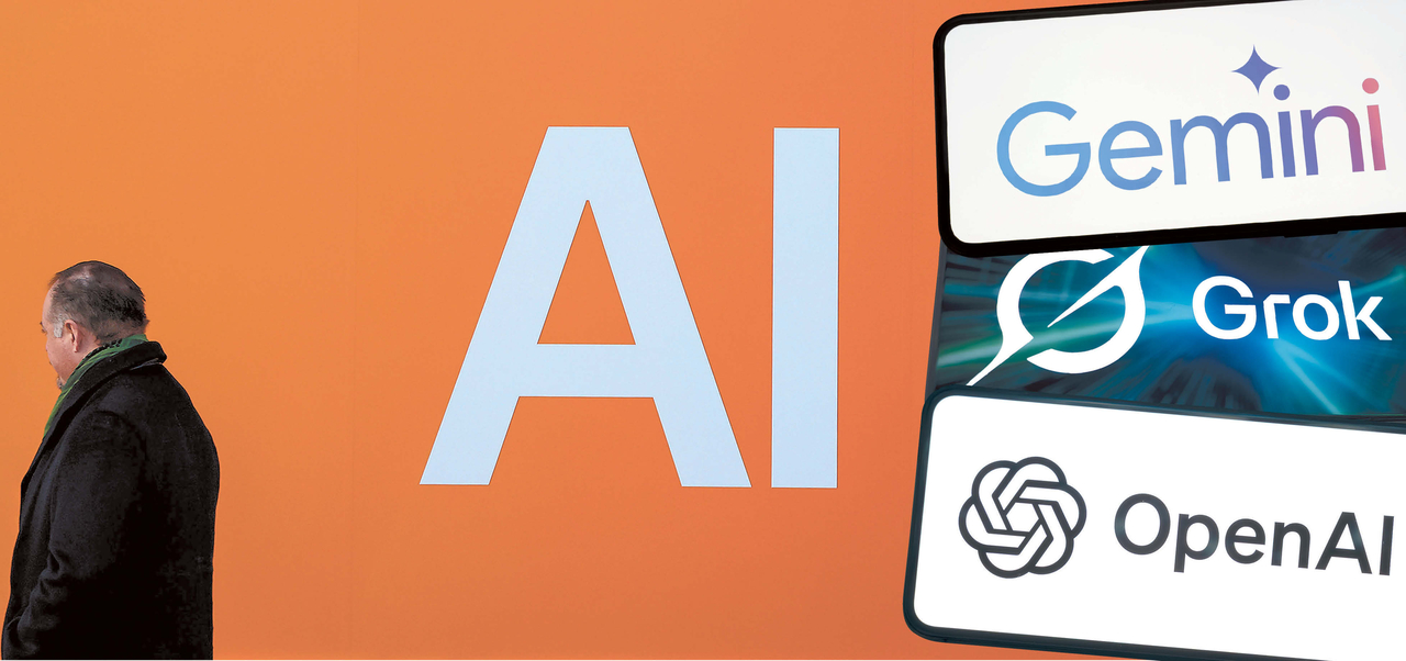 | 지난 1월 23일 스위스 다보스에서 폐막한 세계경제포럼(WEF) 연차총회 기간, 한 건물에 설치된 인공지능(AI) 관련 표지와 오픈AI의 챗GPT, 구글의 제미나이, xAI의 그록 등 주요 AI 서비스 로고를 합성한 모습. |