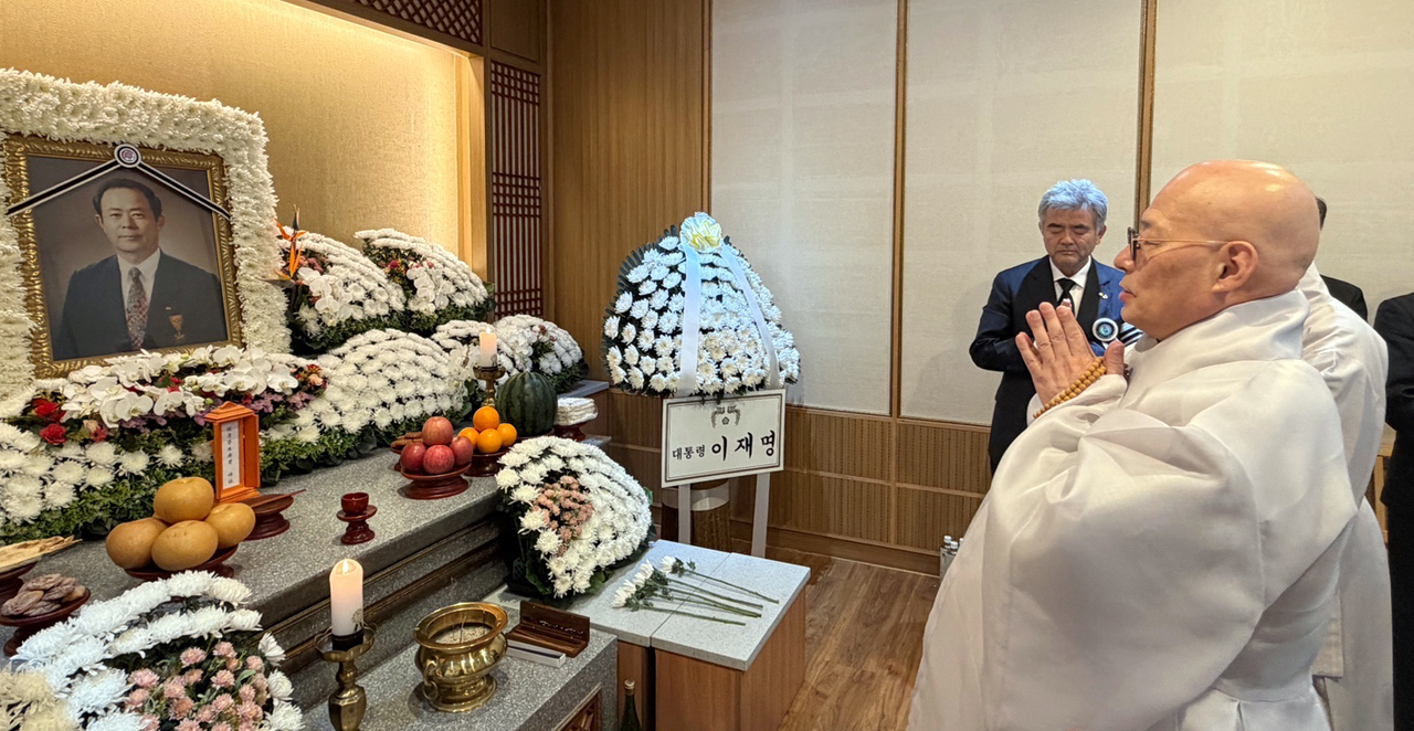 ▶교육·사회공헌 ‘노블레스 오블리주’ 평가도=종교계의 발길도 이어졌다. 4일에는 대한불교조계종 총무원장 진우스님이 중앙승가대학 총장 성웅스님과 포교부장 정무스님과 함께 빈소를 찾아 조문했다. 진우스님은 방명록에 “극락왕생을 발원합니다”라고 남겼다.