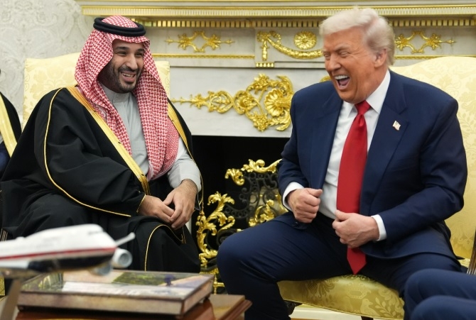 | 무함마드 빈 살만 사우디아라비아 왕세자(왼쪽)와 도널드 트럼프 미국 대통령이 지난해 11월 18일(현지시간) 워싱턴 D.C. 백악관 집무실에서 양자회담을 가졌다.[AFP] |
