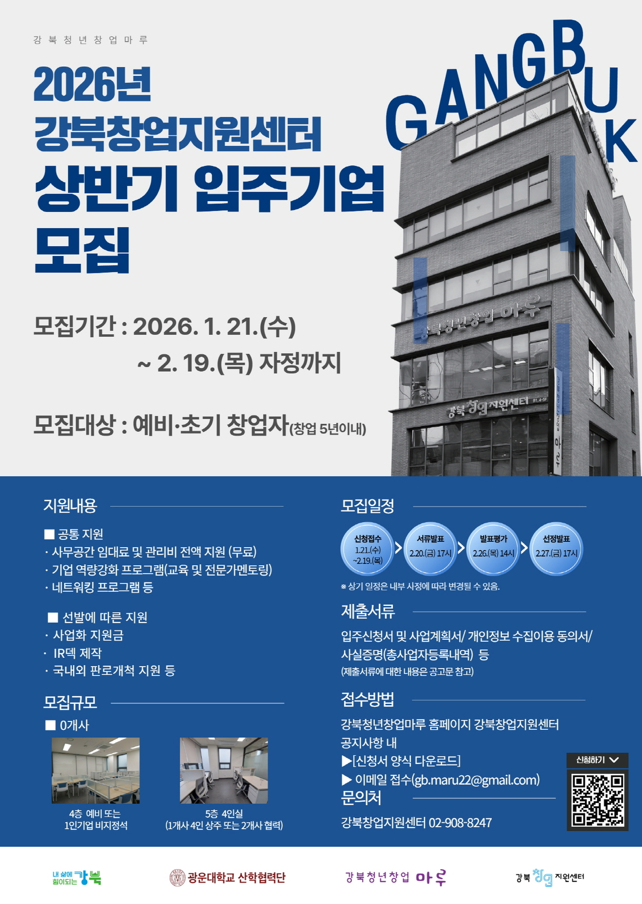 강북창업지원센터는 오는 19일까지 2026년 상반기 신규 입주기업을 모집한다. 모집 대상은 15세 이상 예비창업자 및 창업 5년 이내 초기 창업기업으로, 심사에서는 성장 가능성과 사업 실행력을 중심으로 평가할 예정이다.
