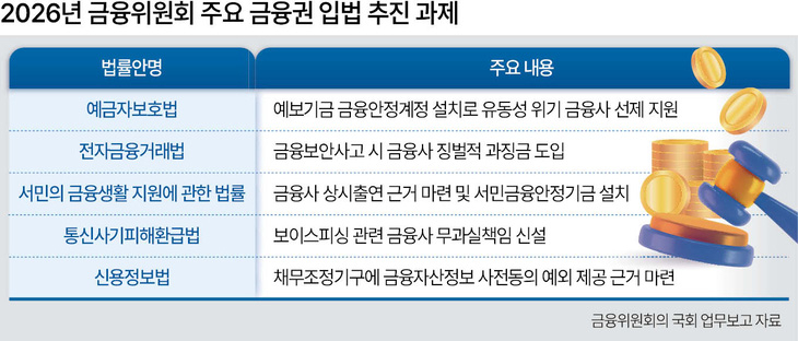 소비자 보호 기조에 맞춰 금융회사의 사회적 책무를 강화하는 입법 역시 핵심 과제다. 금융당국은 전자금융거래법 개정을 통해 금융보안 사고 발생 시 금융회사에 징벌적 과징금을 부과하는 제도를 도입할 방침이다. 또 통신사기피해환급법 개정을 통해 보이스피싱 피해와 관련해 금융회사에 무과실책임을 부과하는 방안도 추진된다. 이를 두고 금융권에선 금융회사에 책임을 집중시키는 방식이 자칫 보수적인 영업 행태로 이어져 소비자 편익을 제약할 수 있다는 우려의 목소리도 나오고 있다.