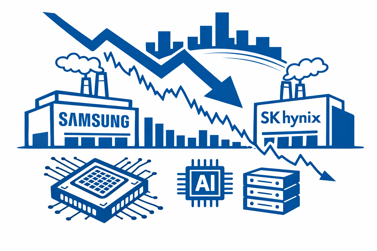 [헤럴드경제=김유진 기자] 간밤 뉴욕 증시에서 기술주 전반이 급락한 영향으로 5일 코스피가 약세로 출발한 가운데, 국내 대표 반도체주인 삼성전자와 SK하이닉스도 장초반 급락세다. AMD와 마이크론 등 주요 반도체 기업의 데이터센터 부문 매출이 시장 기대치에 미치지 못하면서 투자심리가 위축된 모습이다.