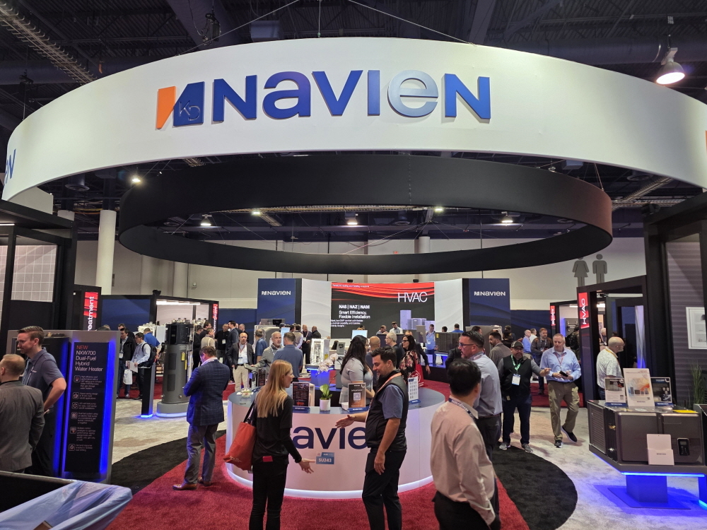 지난해 출시한 히트펌프 온수기 ‘HPWH(Heat Pump Water Heater)’도 함께 전시됐다. 이 제품은 스테인리스 탱크 적용으로 내구성을 높였으며, 저소음 설계와 나비엔 전용 환탕펌프를 통해 온수를 빠르게 공급한다. 상부·측면 배관 연결과 OTA 방식의 소프트웨어 업데이트 지원으로 설치 및 유지관리 편의성도 강화했다.