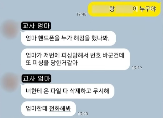 아들은 문자 메시지를 읽고 이상하다는 생각이 들어 엄마에게 “왜 나한테 이상한 거 보낸 거야”라고 물었으나 엄마는 “누가 엄마 휴대폰을 해킹한 것 같다”며 “저번에 해킹당해서 번호 바꾼건데 또 피싱을 당한 것 같다”고 해명했다. 그러면서 “너한테 온 파일 다 삭제하고 무시하라”고 말했다.