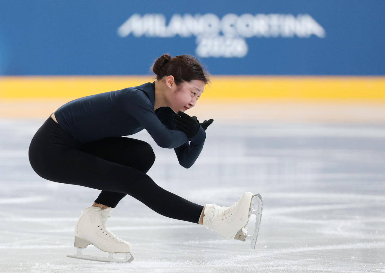 | 2026 밀라노·코르티나담페초 동계올림픽 개막을 하루 앞둔 5일(현지시간) 이탈리아 밀라노 아이스스케이팅 아레나에서 피겨 여자 싱글 신지아가 훈련하고 있다. [연합] |