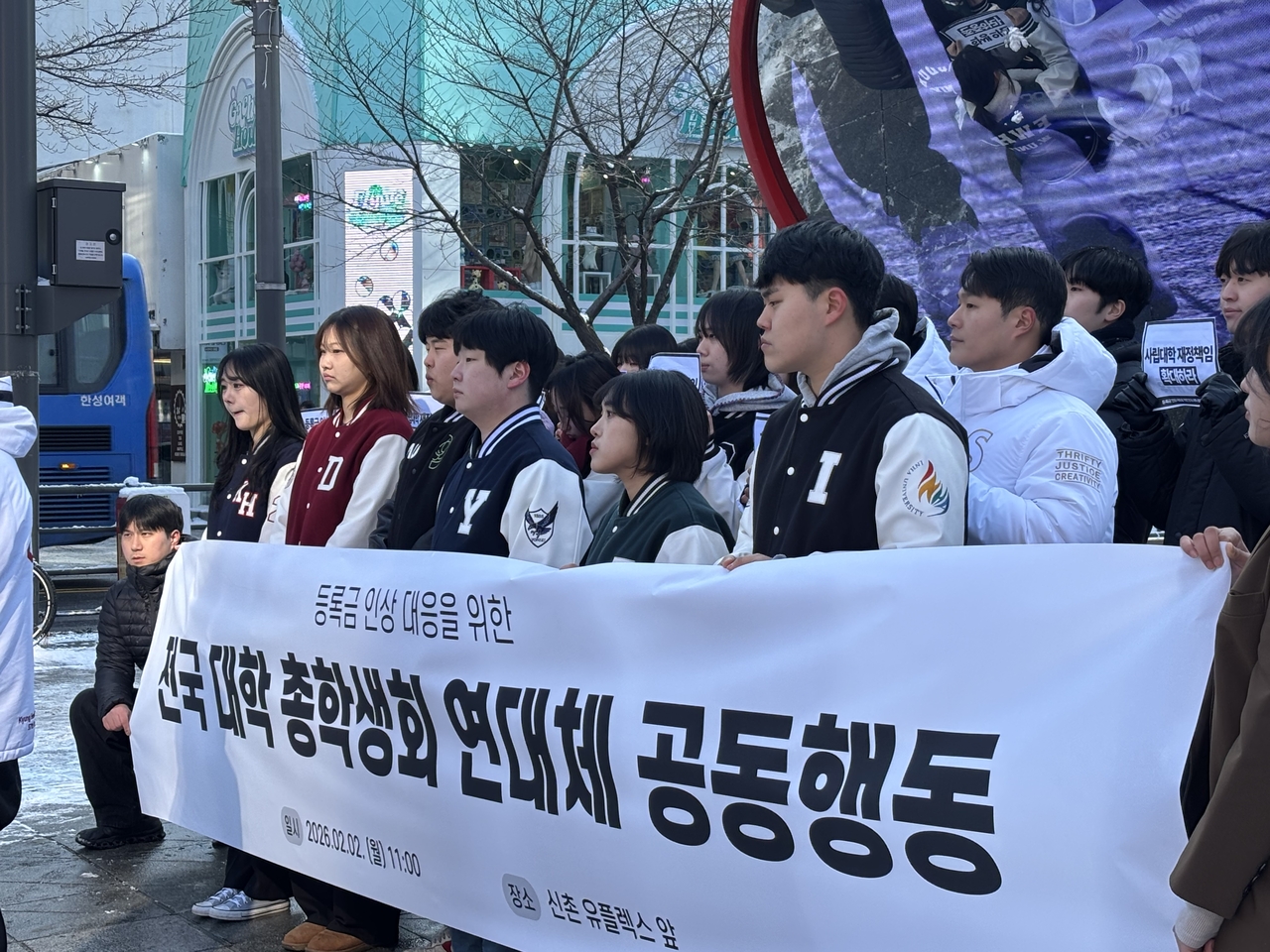 전국대학총학생회공동포럼(전총협)은 지난 2일 서울 신촌에서 기자회견을 열고 사립대 등록금 인상을 규탄했다. 이날 현장에는 16개 대학 총학생회가 참여했다.