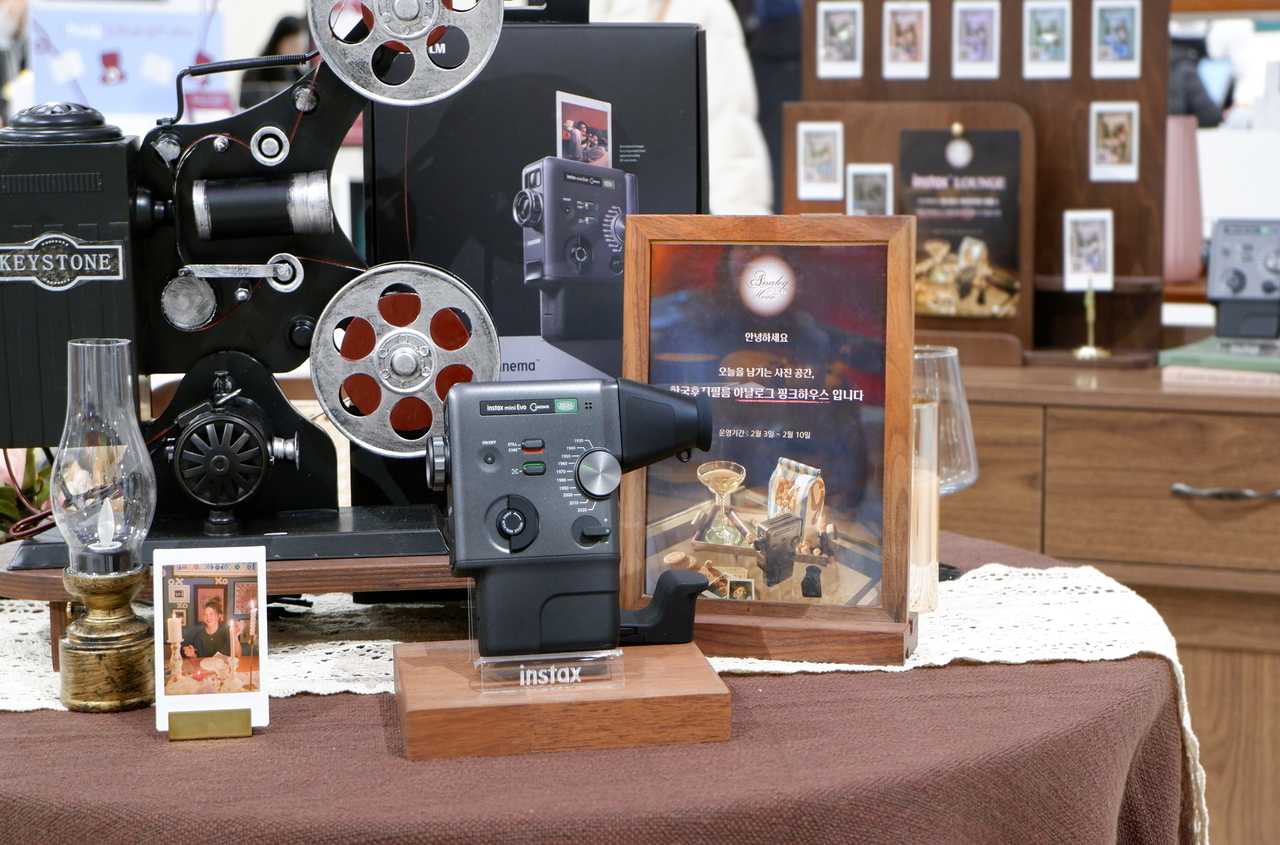 | 한국후지필름 ‘아날로그 핑크하우스’에 전시된 ‘인스탁스 미니 에보 시네마’. [한국후지필름 제공] |