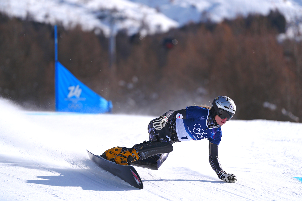 | 8일 올림픽 3연패에 도전한 체코의 에스터 레데츠카가 스노보드 여자 평행대회전 경기를 펼치는 모습. [게티이미지] |