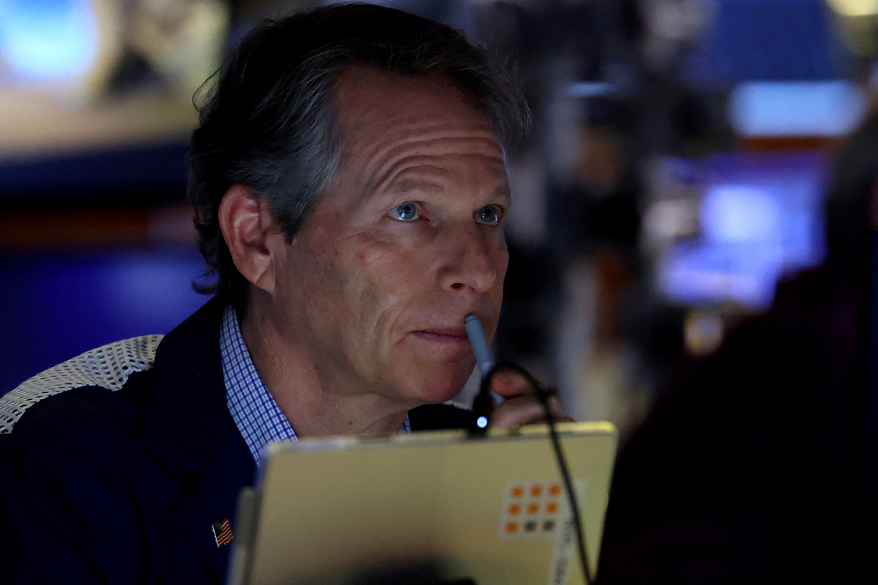 | 지난 5일(현지시간) 미국 뉴욕시의 뉴욕증권거래소(NYSE)에서 한 트레이더가 거래장에서 일하고 있다. [로이터] |